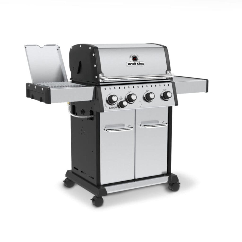Functional and user-friendly, the Baron S 440 Pro IR includes stainless steel drop-down side shelves for added prep space, heavy-duty locking casters for stability, and a fully enclosed cabinet base with stainless doors for tool and accessory storage. Whether you're entertaining a crowd or preparing a quiet dinner, this grill delivers reliable results every time.