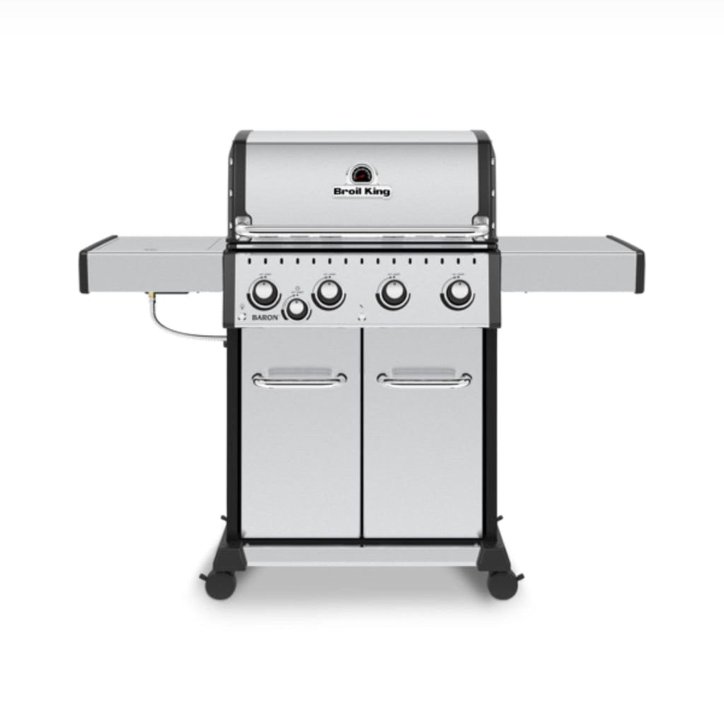 The Broil King 57" Baron S 440 Pro IR is a premium 4-burner gas grill designed for serious grilling enthusiasts. Built with a stainless steel hood panel and cast aluminum end caps, it combines durability with sleek, modern style. The addition of an infrared side burner makes it ideal for searing steaks or cooking side dishes at high temperatures, expanding your outdoor cooking versatility.