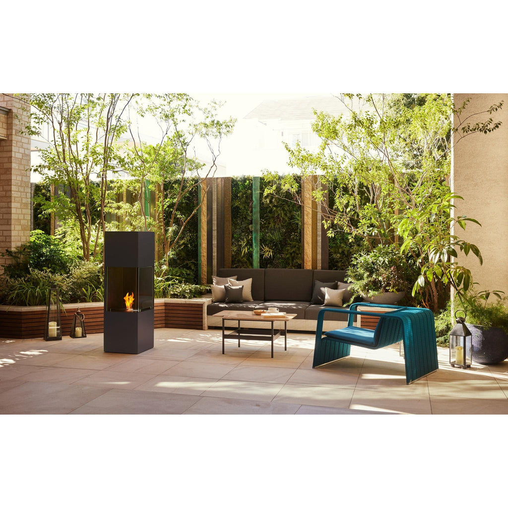A slimline portable fireplace with two viewing sides, offering a wide range of design possibilities for enhancing indoor or covered outdoor settings. Be Series’ clever corner fireplace design enables the portable, vent-free fire to appear as though it’s ‘blending’ into walls, creating an eye-catching feature. Its long, column-style design with open top and 90-degree glass panel provides a stunningly tall, fully-enclosed flame, which immediately commands attention in any room. Minimalist design combined with robust ethanol fireplace technology adds unique style and enhances the aesthetics of your interiors or covered alfresco area. A unique, versatile fireplace that’s perfect for smaller spaces and respects the environment.