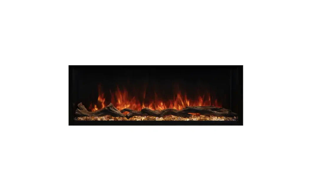 Sleek, clean-lined style for various fireplace designs: wall-mounted, flush, or partial recess. Two types of media included: clear and smoke acrylic stone, and hand-painted canyon driftwood log set for a more authentic fireplace appearance.