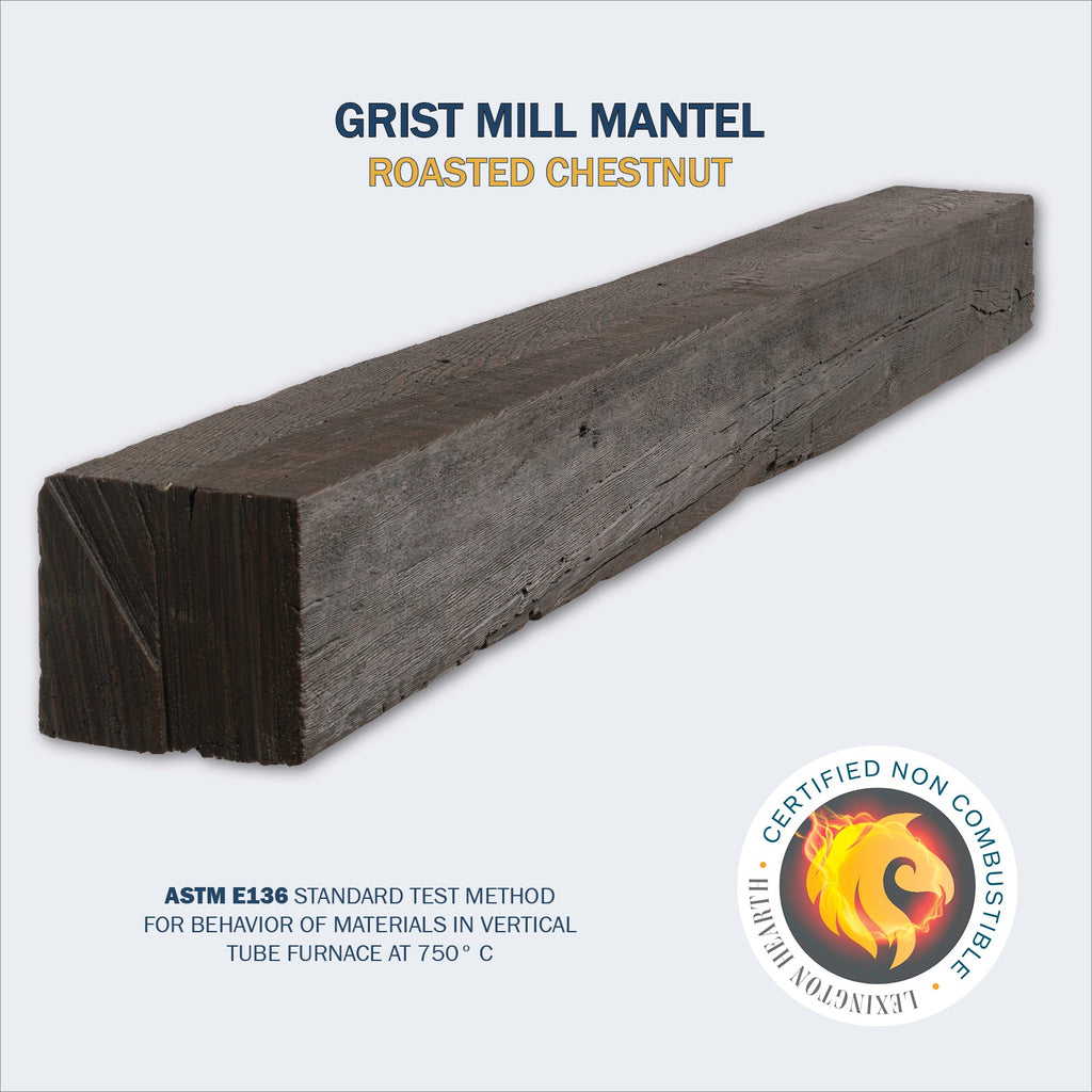 Each mantel is individually hand-painted to highlight the natural grain details and variations that make every piece unique. Tested to meet ASTM E136 non-combustibility standards, the Grist Mill mantel shelf combines artisan craftsmanship, enduring quality, and refined style.