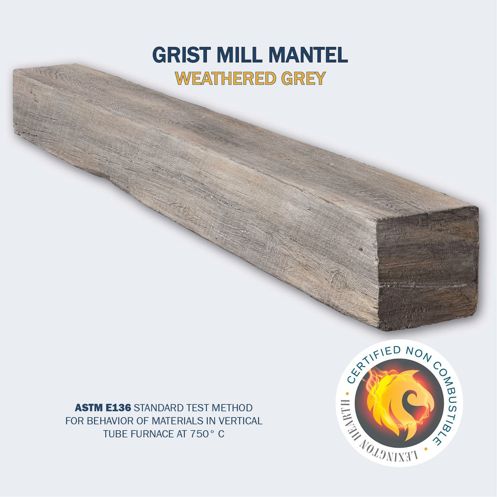 Our Grist Mill mantel is molded directly from a 6” x 5.75” beam which faithfully reproduces every nuance and detail of this beautiful beam. Features include, deep weathered woodgrain, tool marks, insect damage, saw marks, checks & splits, and character knots.