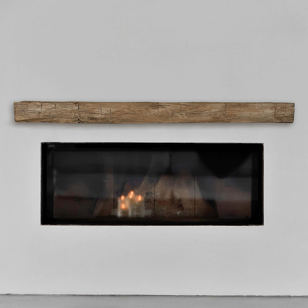 Our Hayloft Mantel pays tribute to the simple, but important function of the hayloft in our equestrian traditions. The Hayloft mantel is modeled directly from a hand-hewn beam with a cross-section of 8” deep, and 5.375” tall at the wall edge, providing plenty of space to display your trophies. Features include rough-hewn tool marks, dowel ends, nail holes, checks & splits, and character knots.