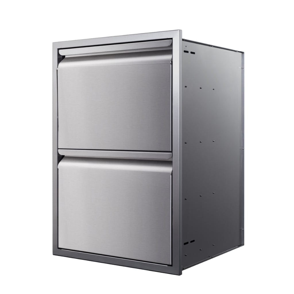 Maximize your outdoor kitchen's storage and efficiency with the Memphis 21" Double Access Stainless Steel Drawer Stack. This robust unit offers a sophisticated and practical solution for keeping your grilling essentials, utensils, and accessories neatly organized and easily accessible. Crafted from heavy-duty 304 stainless steel, it promises exceptional durability and resistance to the elements, ensuring it stands up to the rigors of outdoor use while maintaining its pristine appearance.