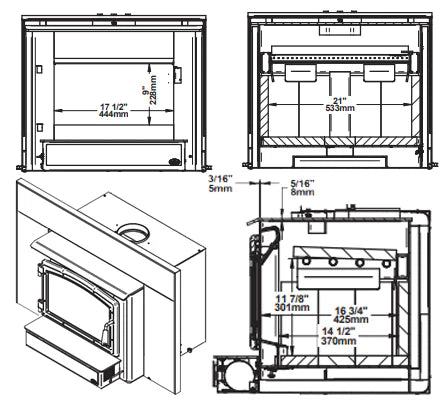 | Fireplace opening – minimum (Height): | 23 3/8" |