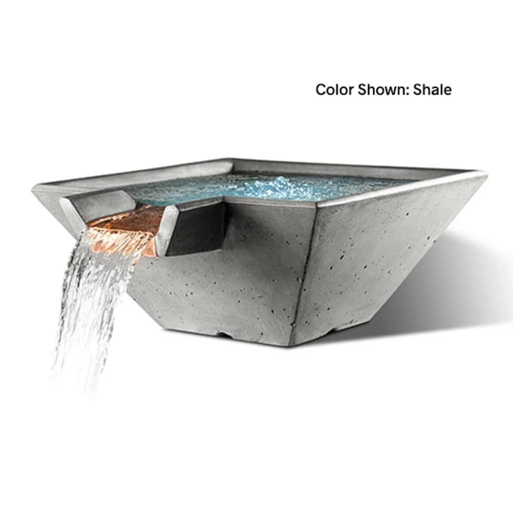 Slick Rock Concrete Cascade Square Water Bowl is available in 22", 29", and 34" sizes. A Conical version is also available.