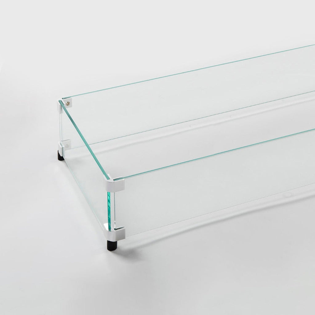 Crafted from tempered glass with stainless steel hardware, this wind guard not only improves flame aesthetics but also adds durability and weather resistance. Rubber base stops protect your fire table surface while providing grip and stability.