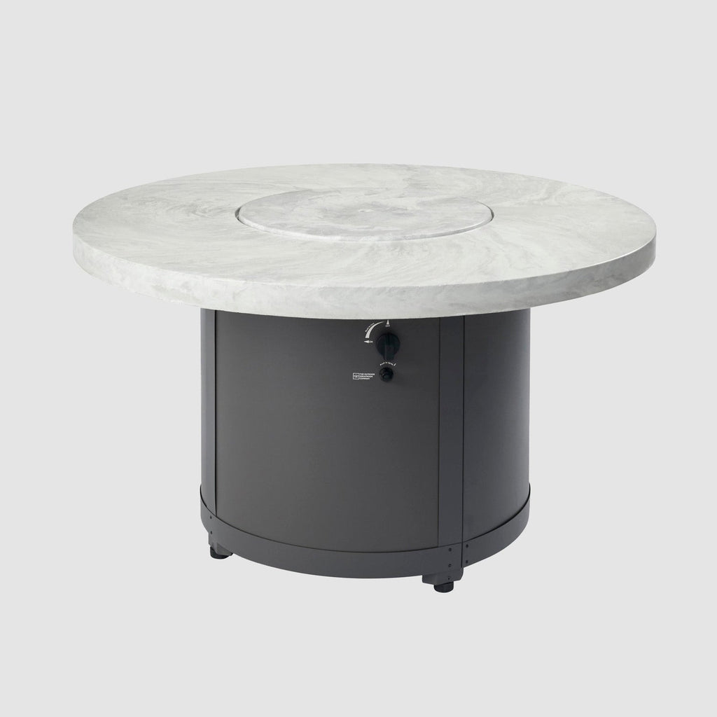 The Outdoor GreatRoom Company Beacon 48" White Onyx Round Gas Fire Pit Table with Crystal Fire® Plus Burner