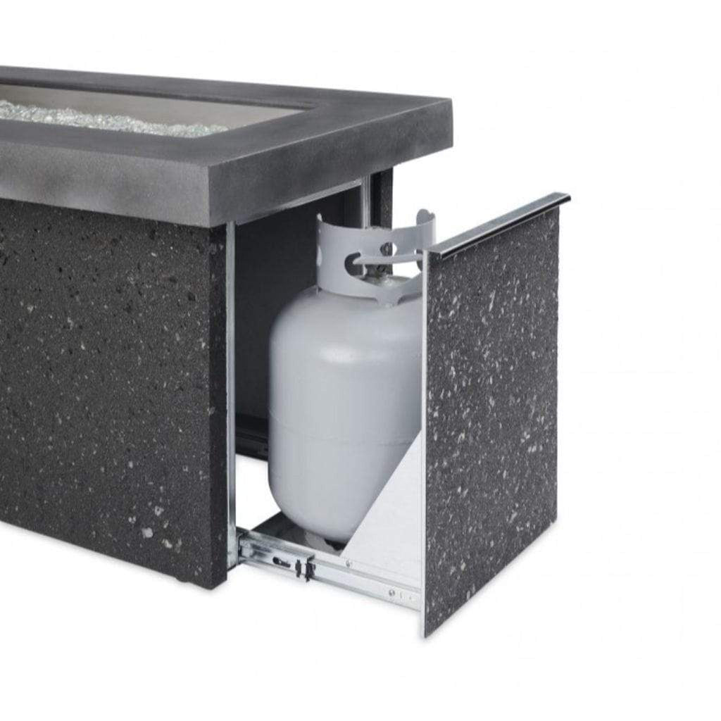- Sliding access door conceals standard 20 lb. propane tank in base